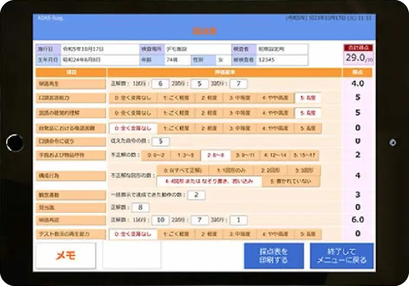 認知機能の程度や原因について調べる為のやり取りの検査を行います。